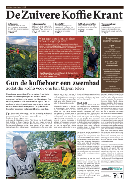 Ter gelegenheid van de Driebergse koffieplantage -een expositie plus workshop en interviews- bundelde de journalist van Het Halve Ambt al zijn artikelen over koffie, in een speciale Zuivere Koffie Krant, die je hieronder of hier kunt downloaden. Vind je m de moeite waard kun je hier misschien een euro overmaken zodat de journalist weer verder op onderzoek kan!
